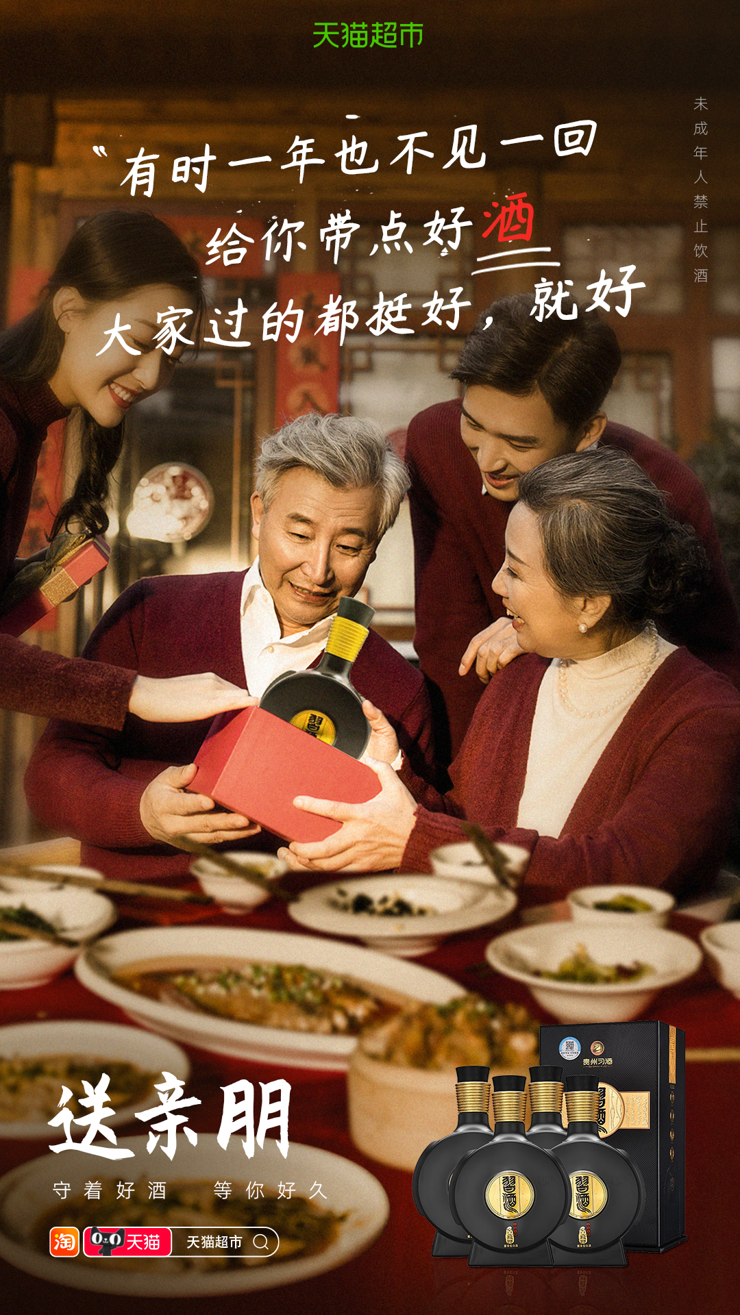 深入大众过年回家场景和年货白酒消费场景,帮助他们选好酒、送好礼,回家过个团圆年猫超联合四大名酒品牌:洋河、习酒、泸州老窖、五粮液